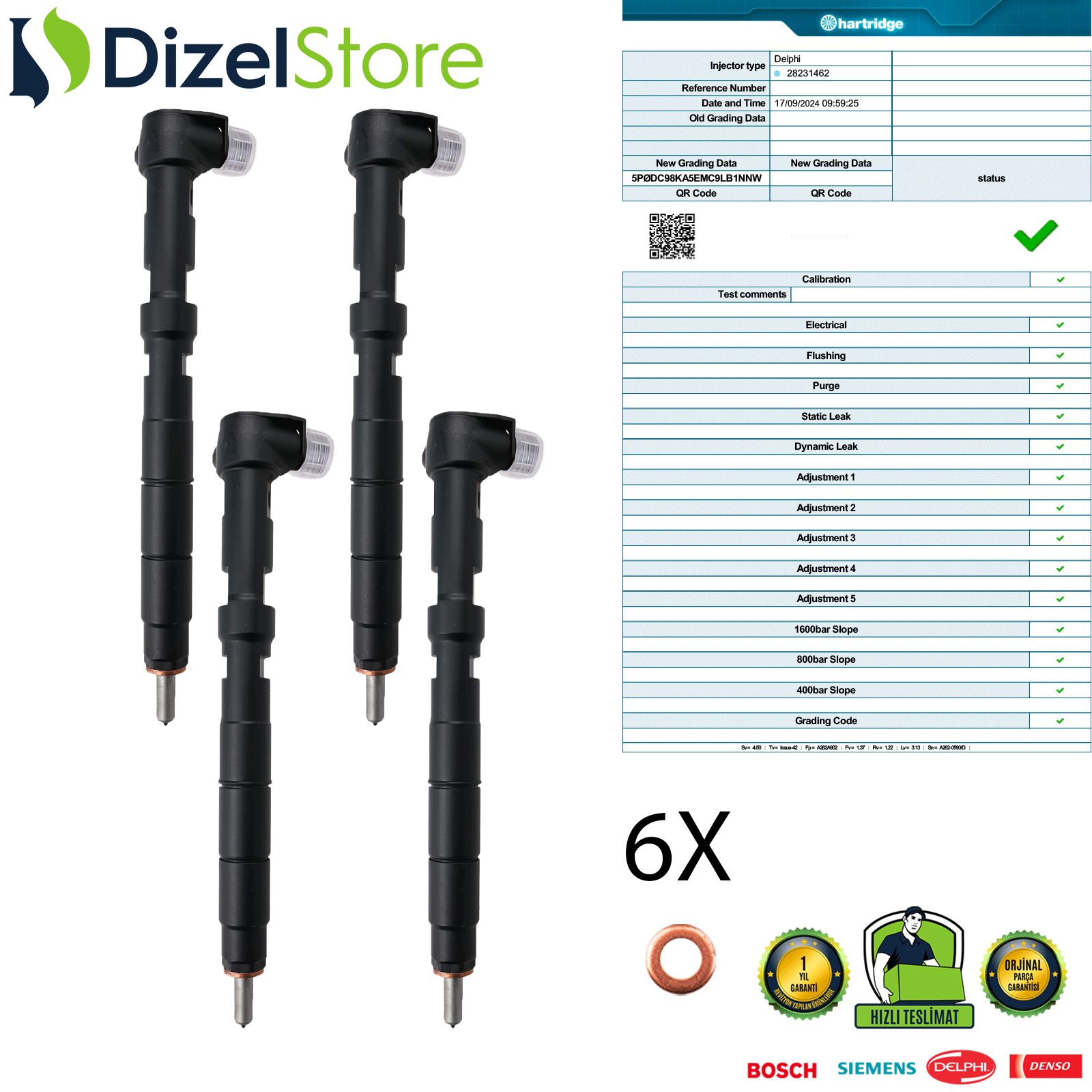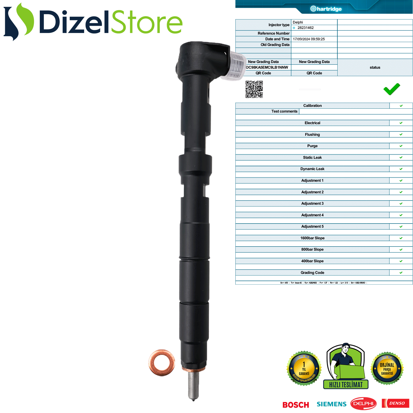 Teslimat, test raporu, O-ring, bakır conta ve 1 yıl değiştirme garantisini içerir.